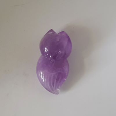 A lucky Fox amulet in Amethyst. Fox is called Kitsune in Japanese and Huli in Chinese.