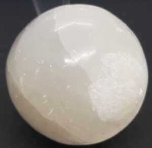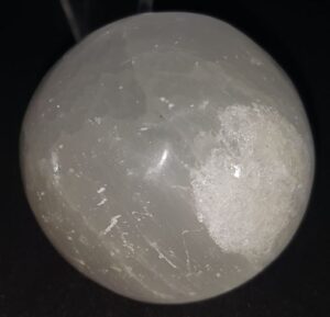 Selenite Sphere 60mm diam. Can be used to access past-lives. Can be used to provide flexibility to your nature and strength to your decisions.