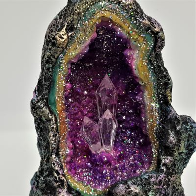 Lovely crystal cave style backflow burner. To add to the effect there are upright crystals in the middle lit by LED lights.