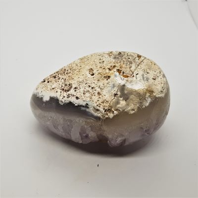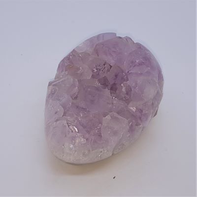 Pale Amethyst in an egg shape flat backed so sits easily. Really pretty piece.