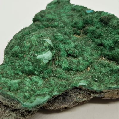 Malachite on matrix. This piece is velvet Malachite with a little Chrysocolla.