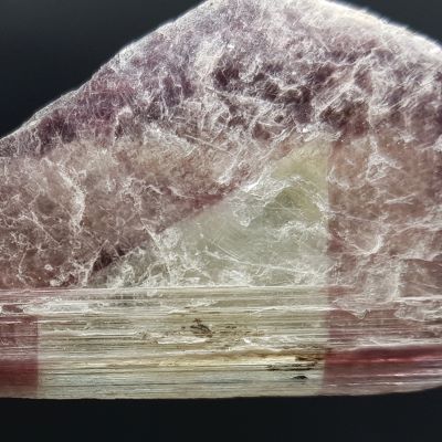 Bi-colour lepidolite is fairly new to the market.  It is an attractive mix of clear and lilac lepidolite creating an appearance of windows.