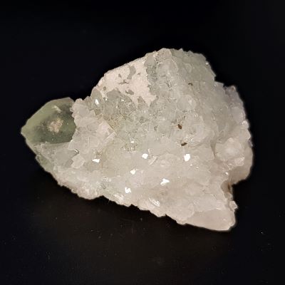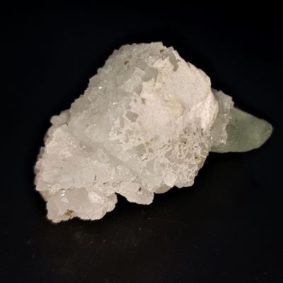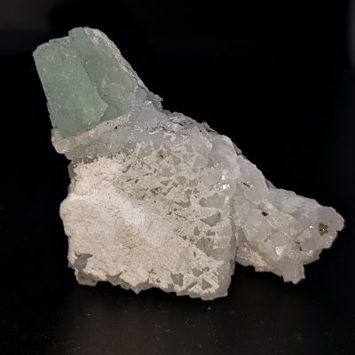 Lovely sparkly piece. Pale green cubes of fluorite coated in sparkly quartz with dots of pyrite.