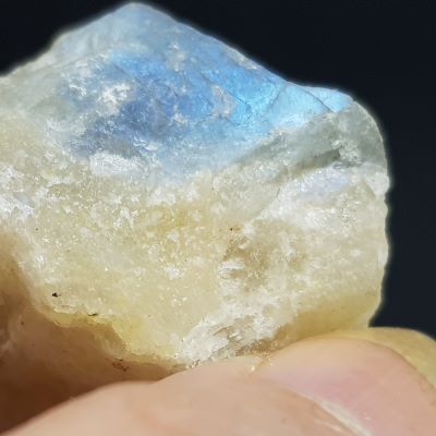 Blue Moonstone. Moonstone is actually white Labradorite and this form has a blue flash.