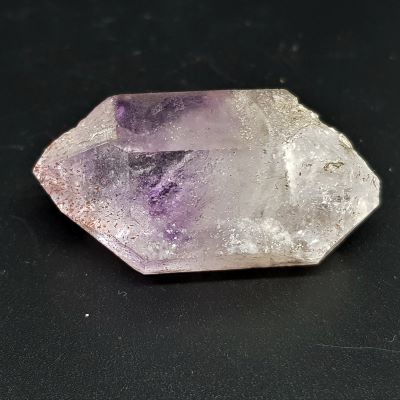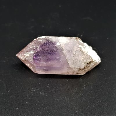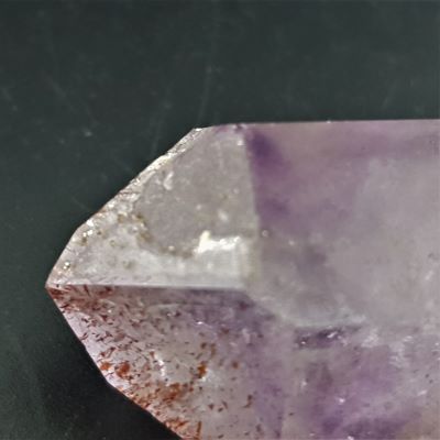 This is a gorgeous Amethyst Brandberg crystal with flecks of hematite and a partial overcoat on the tip.
