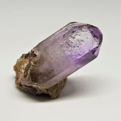 Lovely little amethyst Brandberg double terminated  floater crystal on matrix.   Beautifully clear.