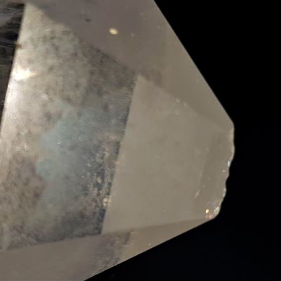 Lovely large quartz point.  The tip is very slightly nibbled but other a fabulous piece.  It is etched and has numerous veils and rainbows.
