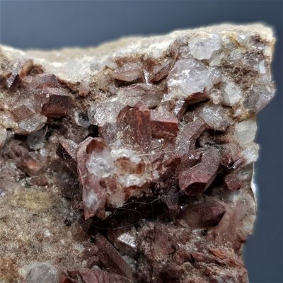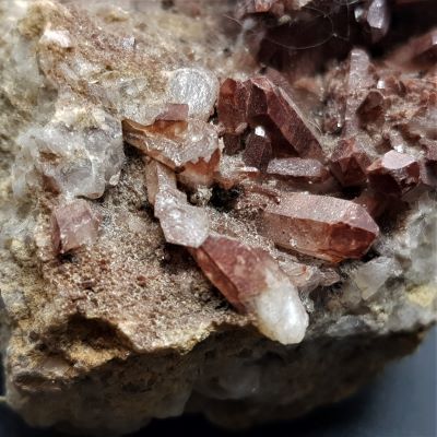 Orange River Quartz cluster. This piece is a matrix with small red hematite included crystals.