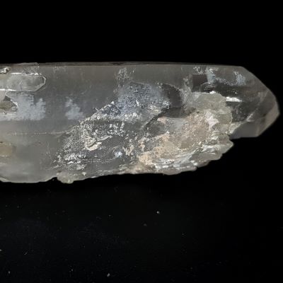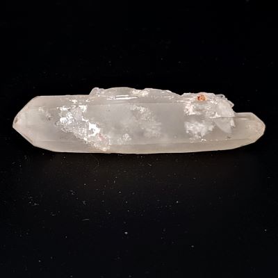 A funky double terminated quartz point with overgrowth and all sorts of bits and pieces on it.