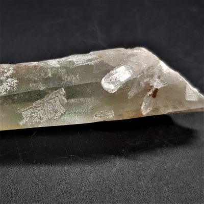 Chlorite included Quartz point. There are some small bridge crystals at the base.