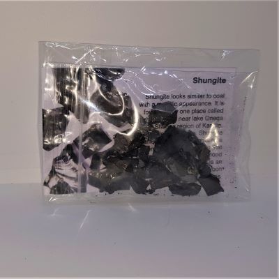 Shungite pieces in pack. Shungite is grounding and can help you focus on your goals.