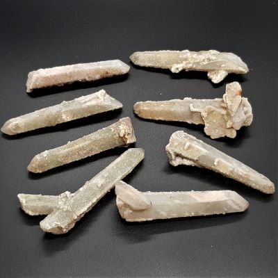 These are drusy coated quartz points which also look to have other minerals in the coating.  They were sold as Witches Fingers although there is another combination of minerals that has this name.  These are lovely points with a really nice soft energy.  I will be unlikely to be able to get more once these have sold.