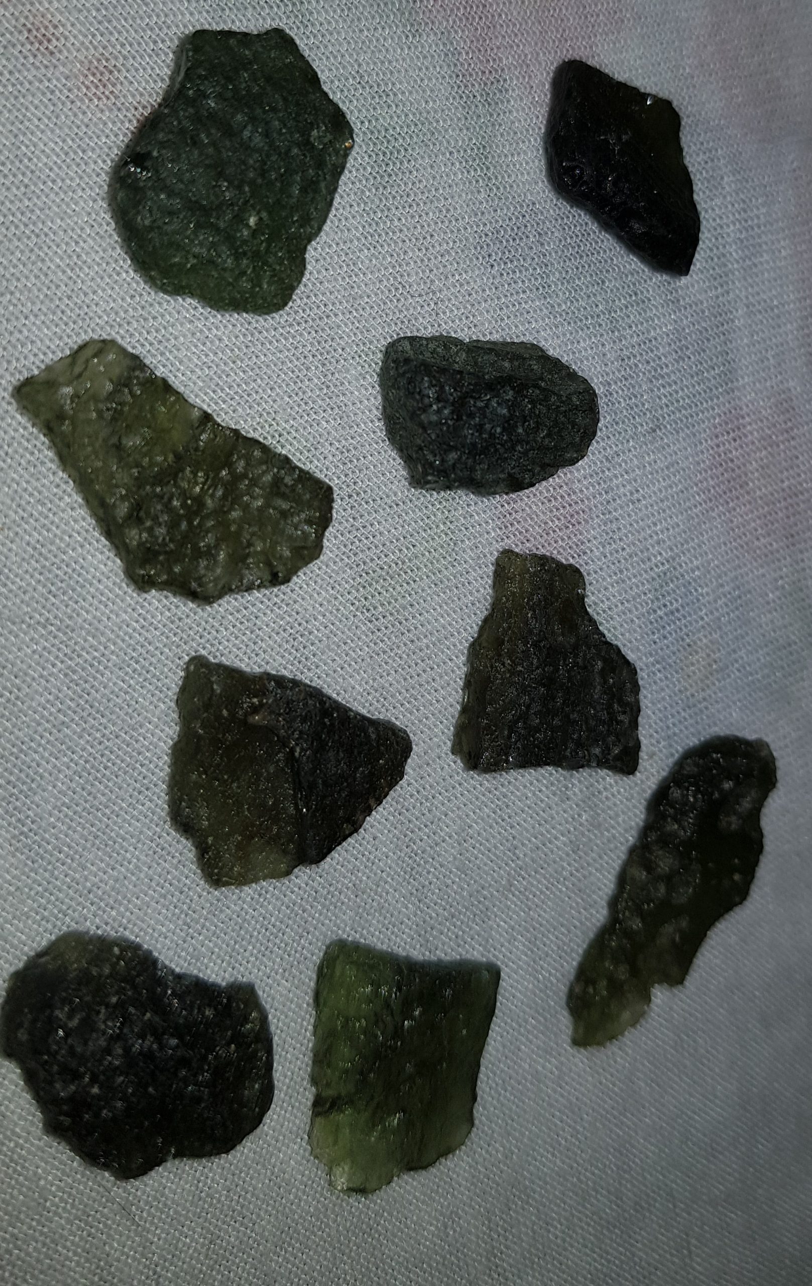 Moldavite small pieces. Moldavite is a form of tektite. It is one of the high frequency stones.