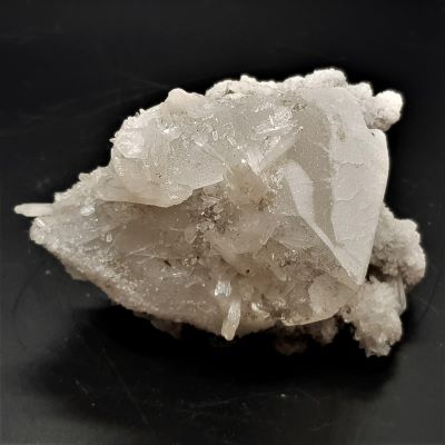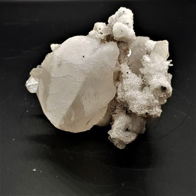Really interesting piece of Calcite with coated ‘fingers’ and stilbite blades. It can stand in several positions to view different parts of this cluster.