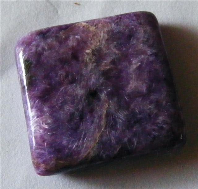Charoite tumblestone. Assists in understanding self-inflicted lessons and is a stone for transformations