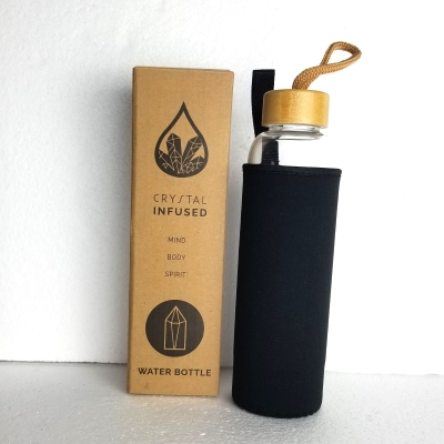 A water bottle with a crystal placed on its bottom with an exceptional energy. Stones placed in water are believed to create a unique ‘crystal elixirs’ that take over the properties attributed to individual crystals. Rose quartz is considered to have a soft loving energy helping to encourage self love and a loving environment.