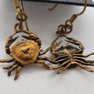Lovely highly detailed Zodiac earrings in base metal. The crab for Cancer measures 20 x 15 mm. These are not indicated to be hypoallergenic.