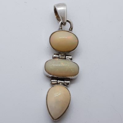 Lovely 3 stone Ethiopian Opal and Silver hinged pendant.  Beautiful colours in this stone.  Ethiopian Opal is good for psychic work generally.