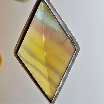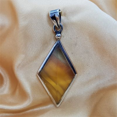 Stunning large diamond shaped Fluorite in silver pendant. It is predominately yellow the less common colour.
