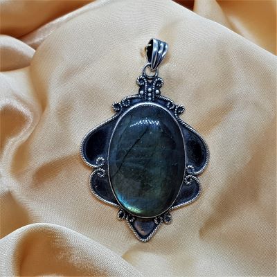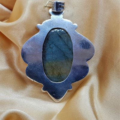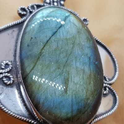 A huge and utterly gorgeous Labradorite in Silver pendant. The camera is not picking up all the flash in this piece that appears in all the stones. The silver trim is lovely.