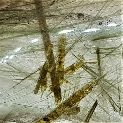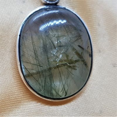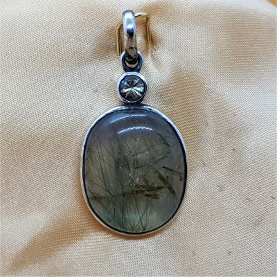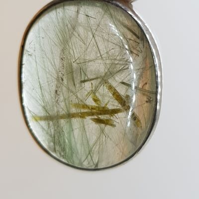 Green Rutile in quartz pendant with citrine. Stone 20 x 17 mm