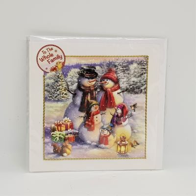 Hand made 3d Decoupage Christmas card. Beautiful image of a family of Snow people