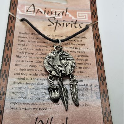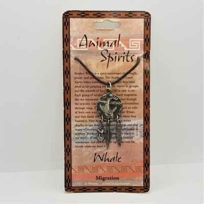 Animal Spirit pendant - Whale. Actual pendant length total 40 mm. This item is not Native American made. Whale has many lessons for us including learning 'when to come up to the sun to take a breath'.